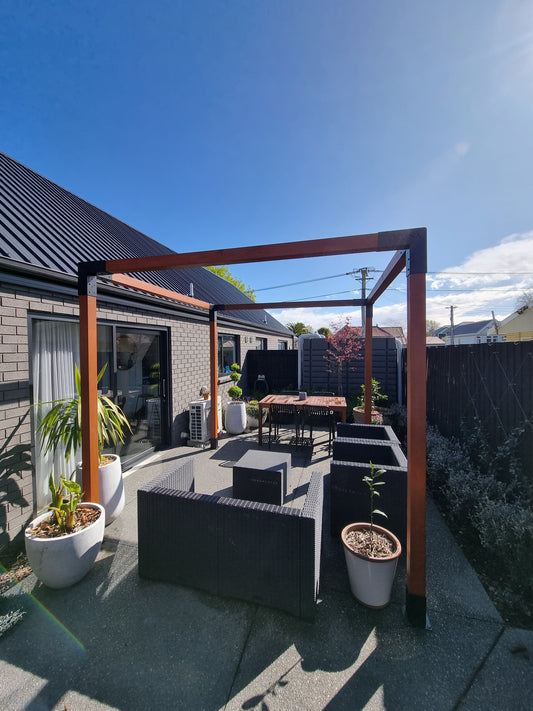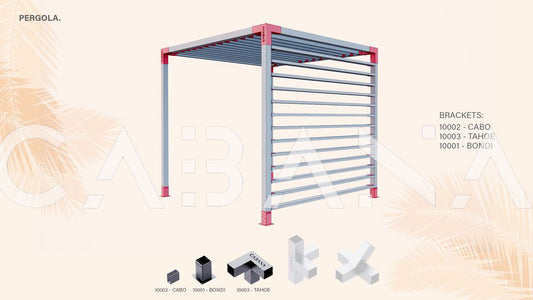 Cabana is a modular Pergola system, the contemporary design of the brackets and connectors will transform any space into a modern relaxed environment.
