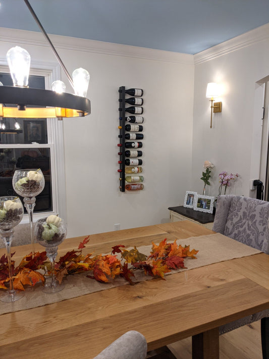 Featuring quirky clamp on table legs, a vertical wall mounted wine rack and liquid soap bottle holder.